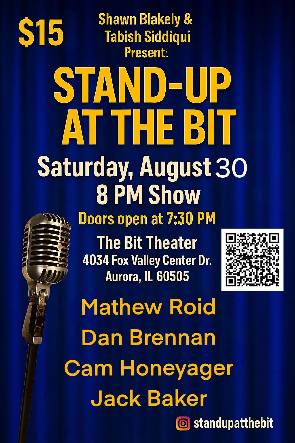 Looking for the perfect date night in Aurora or Naperville? Need a night out that doesn’t feel like the same old thing? Join us at The Bit Theater for an unforgettable evening of laughter, drinks, and good vibes at our signature stand-up comedy showcase.